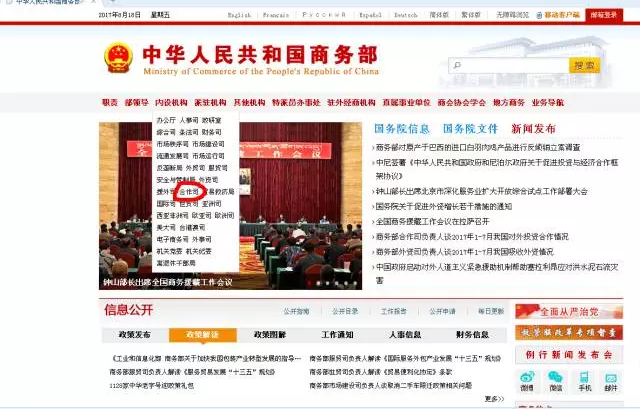 1、打開(kāi)中華人民共和國(guó)商務(wù)部網(wǎng)站http://www.mofcom.gov.cn/